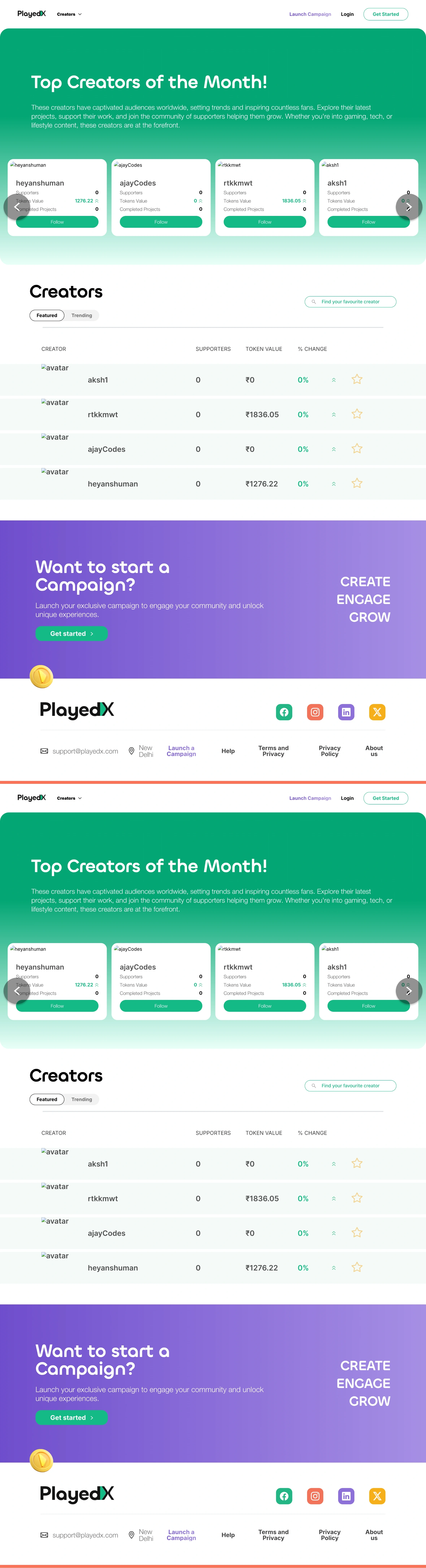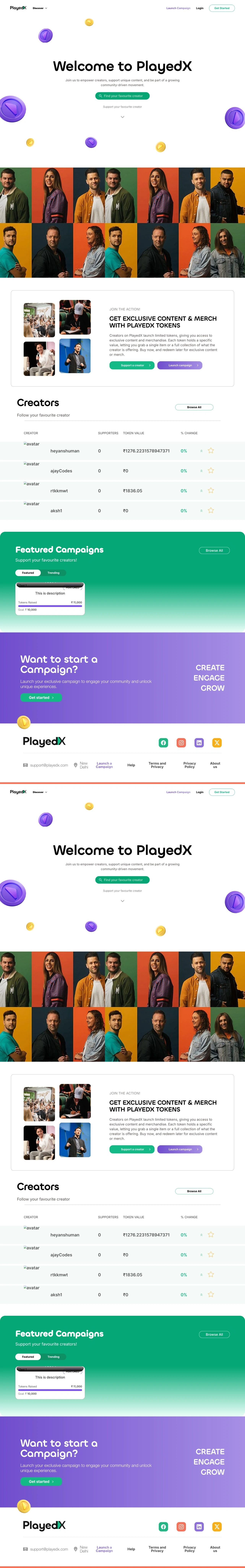 The UI elevated usability and transparency for both creators and supporters. It improved token engagement, streamlined campaign participation, and reinforced PlayedX’s mission of building a community-first creator ecosystem. Over time, user feedback highlighted increased clarity, trust, and ease in token-based interactions.